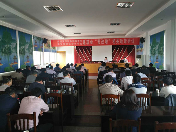 集團(tuán)公司董事長馬和軍在培訓(xùn)前做動(dòng)員講話,他要求集團(tuán)上下要高度重視“營改增”給建筑行業(yè)帶來的沖擊和機(jī)遇,參培人員要虛心聆聽財(cái)稅專家的講解,認(rèn)真學(xué)習(xí)、理解、適應(yīng)“營改增”政策,在新的稅制改革起跑線上,要用新的思維、新的架構(gòu),不斷完善新的管理流程,以務(wù)實(shí)有效的行動(dòng)積極應(yīng)對“營改增”。培訓(xùn)邀請了縣建筑會(huì)計(jì)學(xué)會(huì)會(huì)長黎勝玉高級會(huì)計(jì)師、海安縣國稅局稅征科科長劉家健、海安國源稅務(wù)事務(wù)所所長徐進(jìn)注冊稅務(wù)師等專家,分別從營改增的目的和意義、解讀營改增試點(diǎn)文件及通告、營改增實(shí)務(wù)及納稅申報(bào)等進(jìn)行了講解。