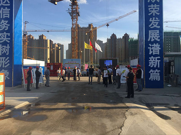 參觀過程中,第七工程公司經(jīng)理陳貴榮同志就施工現(xiàn)場安全標準化、定型化施工工藝、安全體驗區(qū)及綠色節(jié)能施工等向各位來賓一一介紹,本項目良好的場容場貌,綠色節(jié)能環(huán)保設(shè)施,定型化防護設(shè)備等都得到了來賓人員的一致好評。