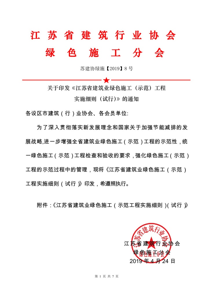 關(guān)于印發(fā)《江蘇省建筑業(yè)綠色施工(示范)工程實(shí)施細(xì)則(試行)》的通知