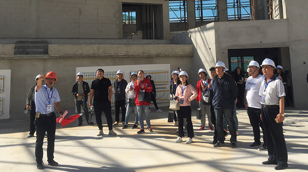 觀摩活動開展前,工程公司技術(shù)負責(zé)人丁園園就項目綠色施工、質(zhì)量安全標(biāo)準(zhǔn)化施工、BIM技術(shù)運用等方面作了經(jīng)驗介紹。觀摩中,項目技術(shù)負責(zé)人洪陽就項目BIM技術(shù)在場地布置模擬、樣板策劃、碰撞檢查與優(yōu)化、可視化交底、凈高分析與控制、日常安全質(zhì)量管理等方面做了詳細講解。