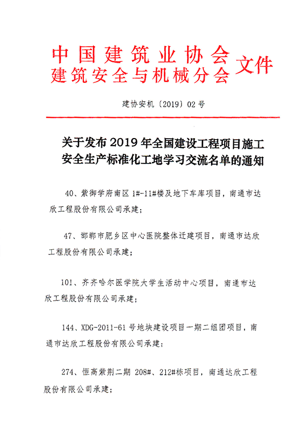 “全國建設(shè)工程項(xiàng)目施工安全生產(chǎn)標(biāo)準(zhǔn)化工地”由中國建筑協(xié)會建筑安全分會在全國范圍內(nèi)組織開展的大型評選活動,是國家建設(shè)部批準(zhǔn)的全國范圍內(nèi)建筑安全文明施工領(lǐng)域的最高獎項(xiàng),旨在規(guī)范施工安全生產(chǎn)工作,保障建筑職工生命安全與健康。此項(xiàng)殊榮的獲得,將進(jìn)一步提高了集團(tuán)項(xiàng)目的標(biāo)準(zhǔn)化管理水平,營造良好的安全生產(chǎn)氛圍,為提升企業(yè)形象、促進(jìn)企業(yè)長遠(yuǎn)發(fā)展奠定堅(jiān)實(shí)的品牌基礎(chǔ)。