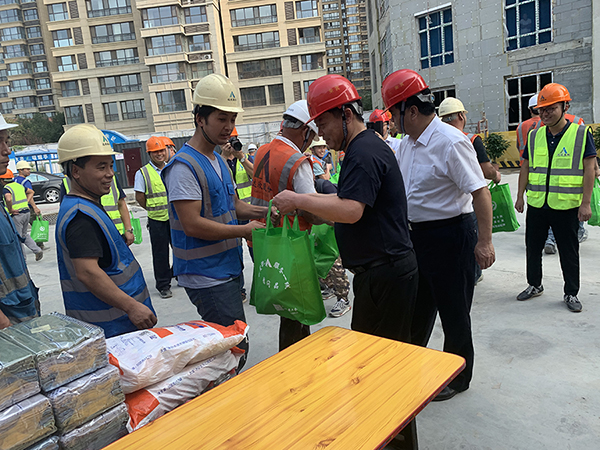 市長(zhǎng)于立忠一行為大家送來(lái)了毛巾、防暑降溫飲品等消暑物品,感謝大家為建造和諧社會(huì)、美好家園在高溫酷暑中依然堅(jiān)守,為祖國(guó)、為家鄉(xiāng)做貢獻(xiàn),同時(shí)也希望大家立足本職工作,繼續(xù)發(fā)揚(yáng)特別能吃苦、特別能戰(zhàn)斗的主力軍作風(fēng),展現(xiàn)新時(shí)期達(dá)欣鐵軍隊(duì)伍特有的風(fēng)采,并反復(fù)叮囑大家一定要安全施工,合理安排作息時(shí)間,勞逸結(jié)合,保重身體,做好防暑降溫措施。