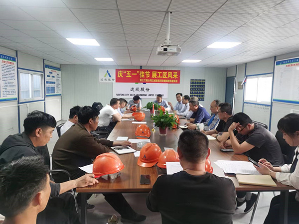 項目經(jīng)理孫益軍,就如何做好項目安全工作做了表態(tài)性發(fā)言,項目技術負責人丁德軍分享了編制工程安全施工方案的方法與經(jīng)驗。