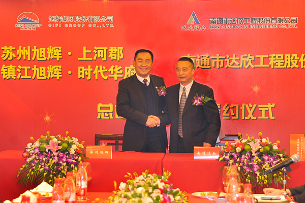3月20日南通市達(dá)欣工程股份有限公司與旭輝集團(tuán)股份有限公司在上海就蘇州旭輝·上河郡、鎮(zhèn)江旭輝·時代華府項目舉行合同簽約儀式。旭輝集團(tuán)董事長林中、達(dá)欣公司副董事長、黨委書記劉厚純,分別發(fā)表了熱情洋溢的講話。雙方表示此次總包合同的簽約標(biāo)志著旭輝集團(tuán)與達(dá)欣公司長期合作將會有著更為廣闊的空間!蘇州上河郡項目總建筑面積92075m2,由5棟13層小高層住宅、6棟5層商業(yè)用房和一棟幼兒園組成;時代華府項目總建筑面積161000m2,由9棟32層高層住宅組成。 旭輝集團(tuán)股份有限公司成立于2000年,是集房地產(chǎn)開發(fā)、建筑施工、物業(yè)管理于一體的全國性房地產(chǎn)開發(fā)企業(yè),連續(xù)5年穩(wěn)居中國房地產(chǎn)企業(yè)百強(qiáng)。湖南旭湘·華府工程是我公司與旭輝集團(tuán)的首度合作,我公司項目團(tuán)隊以良好的配合、優(yōu)質(zhì)高效的速度,贏得了建設(shè)方與當(dāng)?shù)亟ㄔO(shè)主管部門的肯定,贏得了市場聲譽,該項目先后獲得“全國AAA級安全文明標(biāo)準(zhǔn)化誠信工地”、湖南省“文明工地”、湖南省“安全標(biāo)準(zhǔn)化示范工程”、長沙市“優(yōu)質(zhì)結(jié)構(gòu)”等稱號。
