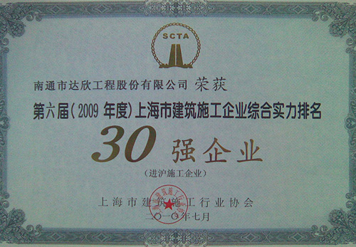 達(dá)欣股份首次挺進(jìn)進(jìn)滬施工企業(yè)前30強(進(jìn)滬施工的江蘇企業(yè)僅有八家),這標(biāo)志著公司跨入了進(jìn)滬強企的第一方陣,標(biāo)志著公司進(jìn)滬施工進(jìn)入了新階段!同時公司還再次榮獲了“上海市建筑業(yè)誠信企業(yè)”稱號。上海市的主流媒體“解放日報”、行業(yè)報刊“建筑時報”均予以報導(dǎo)。