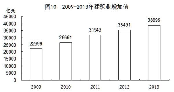 2013年全國建筑業(yè)增加值38995億元,比上年增長9.5%。全國具有資質(zhì)等級的總承包和專業(yè)承包建筑業(yè)企業(yè)實現(xiàn)利潤5575億元,增長16.7%,其中國有及國有控股企業(yè)1363億元,增長20.1%。