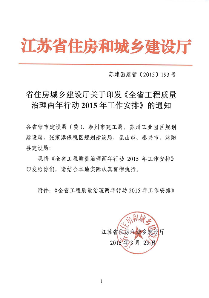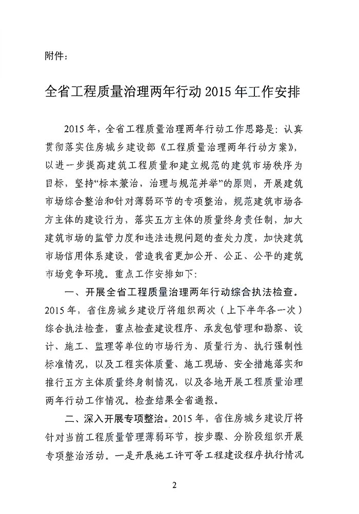 省住房城鄉(xiāng)建設廳關于印發(fā)《全省工程質(zhì)量治理兩年行動2015年工作安排》的通知