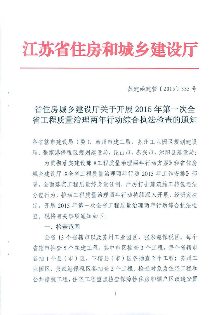 省住房城鄉(xiāng)建設(shè)廳關(guān)于開(kāi)展2015年第一次全省工程質(zhì)量治理兩年行動(dòng)綜合執(zhí)法檢查的通知